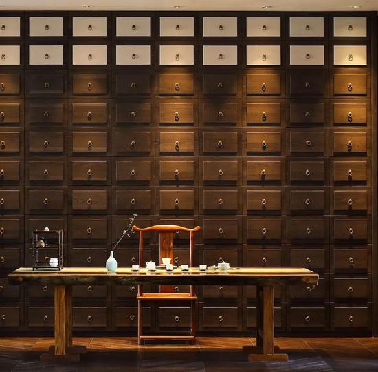 特色的入口庭院,最大限度地延伸了室外入口的视线范围,景观的布置,简洁精致,体现了东方院落布局的建筑个性。细致的灯光与墙体线脚的融合设计乃至窗外的中式窗格都如江南风景的秀色点缀,形成了进入主体大堂前的过渡层次。
